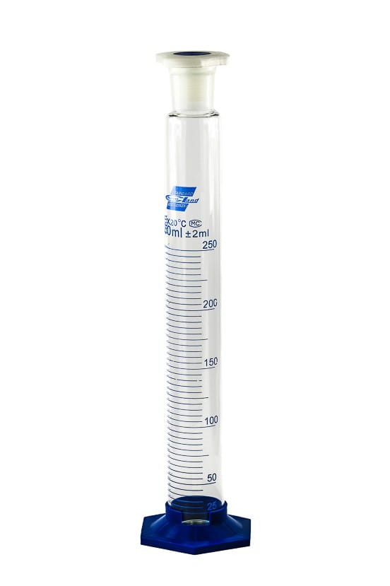 Cylinder miarowy szklany z korkiem 250 ml stopa PP