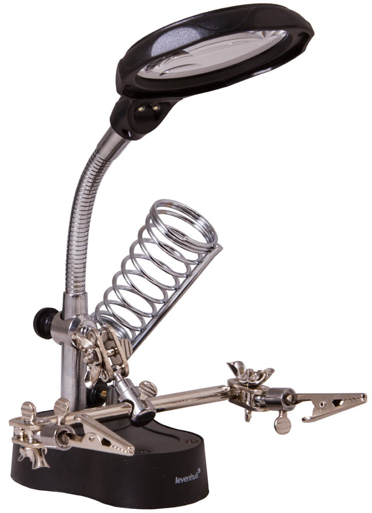Lupa Levenhuk Zeno Desk D3 sprawdza się świetnie przy pracy z płytkami drukowanymi, wykonywaniu precyzyjnych czynności na podzespołach elektronicznych, lutowaniu, naprawianiu, tworzeniu biżuterii i składaniu modeli. Lupa Levenhuk Zeno Desk D3 nie tylko jest wyposażona w szkło powiększające umieszczone na elastycznym ramieniu, ale ma także trzecią rękę. Pozwala ona na solidne zamocowanie płytek elektronicznych lub niewielkich obiektów. Dzięki niej można wygodnie pracować nawet przez dłuższy czas. Dostępny jest także dodatkowy uchwyt, dzięki któremu wszystkie narzędzia będą zawsze pod ręką.
