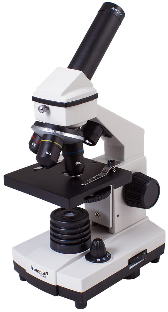 Wytrzymały korpus mikroskopu wykonany jest z metalu, dzięki czemu może być wykorzystywany w szkołach i na uniwersytetach podczas zajęć z biologii i chemii. Głowica nachylona jest pod kątem 45 stopni, co pozwala na wygodne prowadzenie obserwacji. Monokularowa głowica obraca się w zakresie 360° wokół własnej osi, co jest bardzo przydatne podczas pracy w grupie: nie trzeba przenosić mikroskopu – wystarczy obrócić głowicę. Oświetlenie zasilane jest za pomocą przewodu lub baterii, dzięki czemu z mikroskopu można korzystać na zewnątrz lub w szklarni.