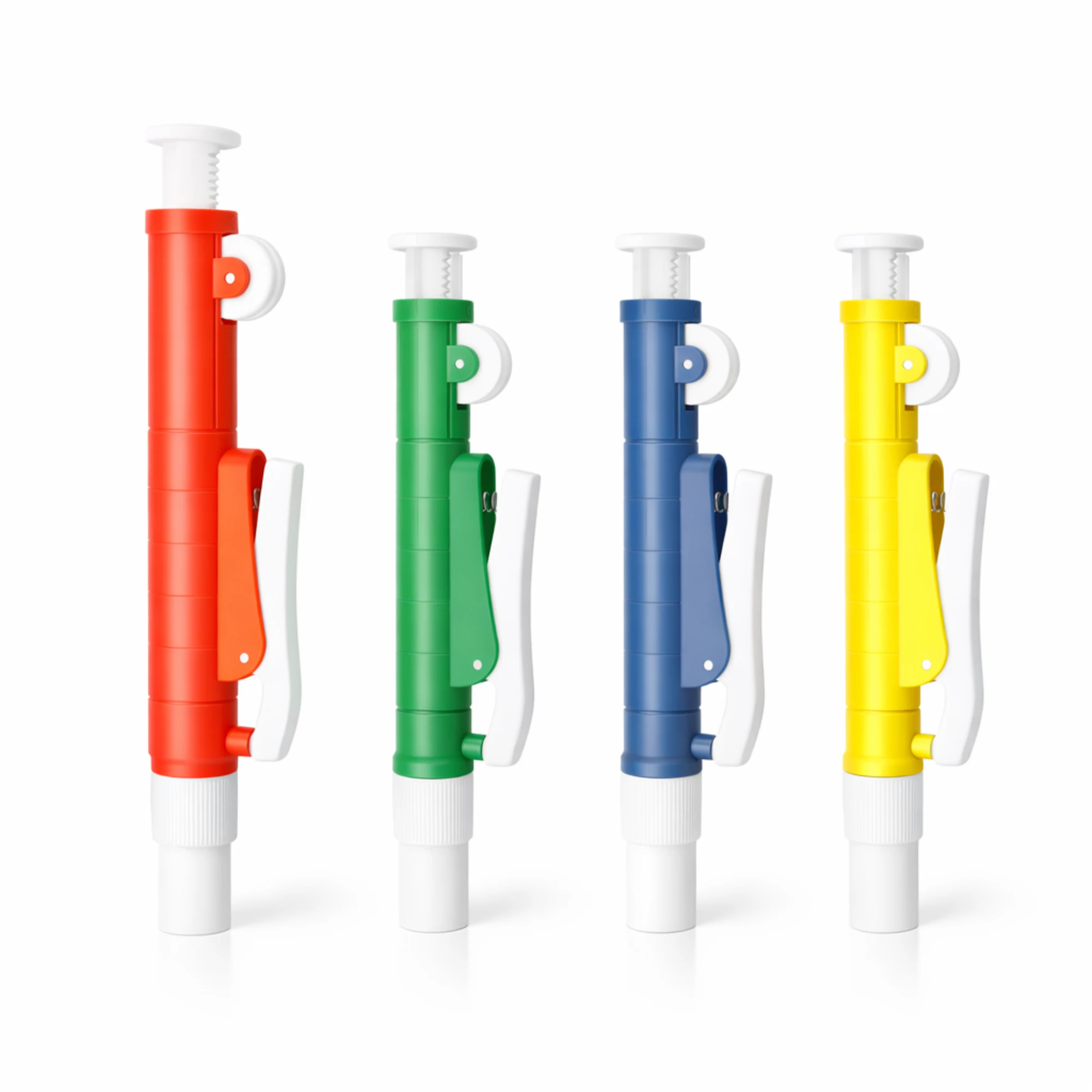 Pompka pipetowa to precyzyjne narzędzie do zasysania i dozowania cieczy z wykorzystaniem pokrętła oraz bocznej dźwigni.
