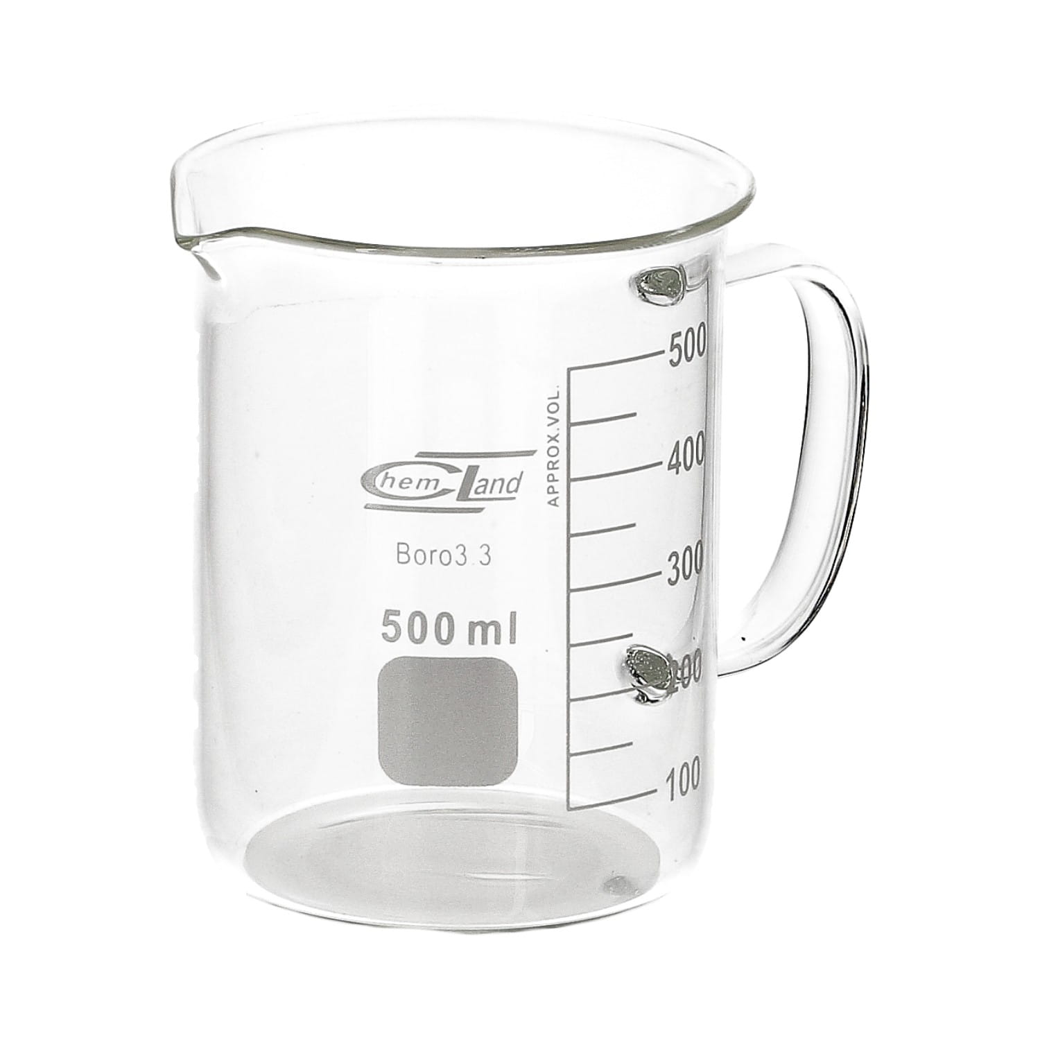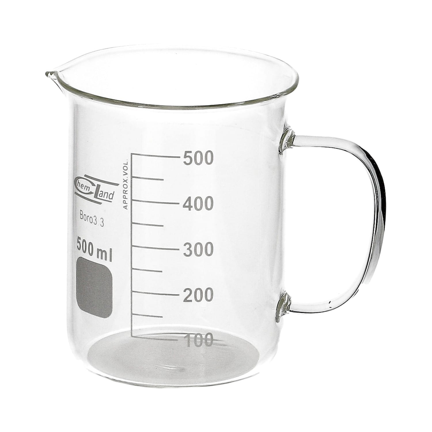 Zlewka szklana 500 ml z uchem Chemland