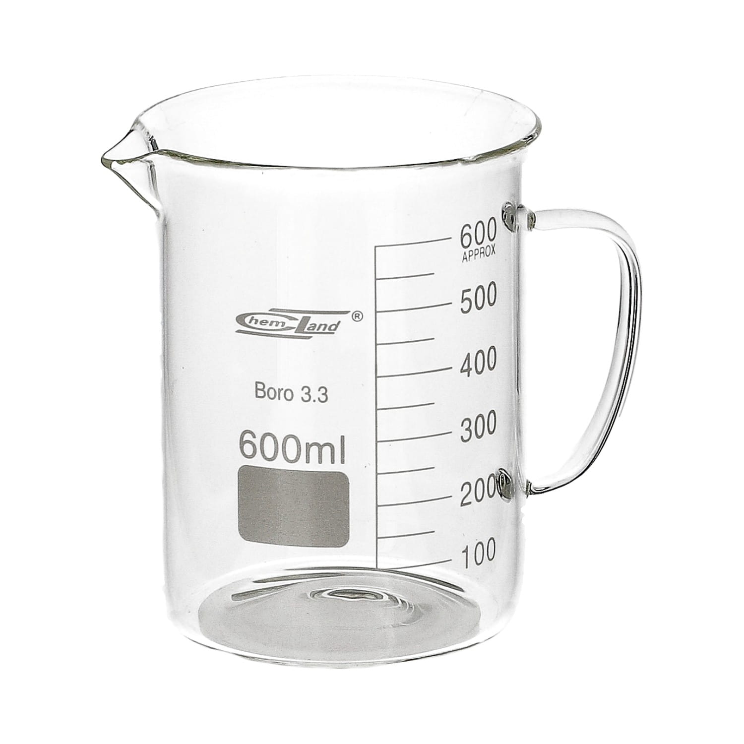 Zlewka szklana 600 ml z uchem Chemland